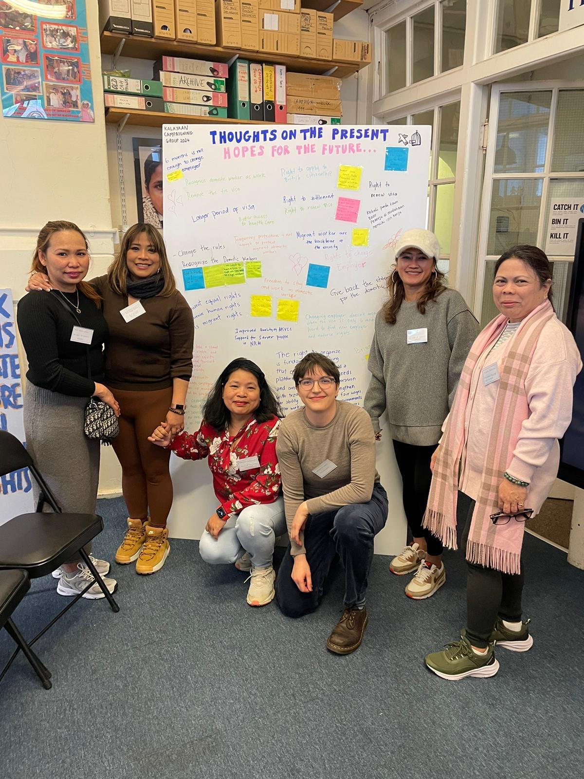 Members of Kalayaan’s campaigning group wrote their hopes and thoughts for the future of migrant domestic workers in the UK on a large display board present for all to see. Attendees were encouraged to do the same in an interactive scrapbook. Coffee, tea and pastries were served as we spoke about our past challenges and recent achievements, including the government laying legislation to abolish the Family Worker Exemption in the Minimum Wage Regulations, and our hopes and plans for the future as we re-double our efforts to lobby for change in this election year.